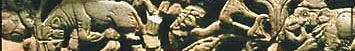 Copyright © Dr. Volker Thewalt 1969 / 2002 [ Vgl. Francine Tissot 2006, Catalogue of the National Museum of Afghanistan 1931-1985, UNESCO publishing 2006, Paris, pp. 158, 159: K.p.Beg. 327.67a&b; 331.71 Exc. no. 183. K.M. inv. no. 58-1-43. Incised Ivory, low relief. ROW, 66, fig. 6, p. 64. General view of coffer or stool IX Begram (Kapisa province) Begram was a large city, probably a royal town, situated some 80 km north of Kabul, in the province of Kapisa. When the ivory and bone pieces were first discovered in the Begram treasury in 1937, they were thought to be elements from luxury furniture belonging to a king, or more particularly his queen. However, neither the architectural elements nor the situation of the site seem to indicate that the building could be identified as a royal residence. The pieces of the treasury may therefore be identified as precious goods belonging to an important merchant to be sold or presented to wealthy people or perhaps to some petty sovereign or the king. This problem has to be studied anew. The ivory and bone furniture was made of carved, incised or engraved pieces, possibly painted (red and black), fixed to wooden frames with copper nails. Most of these elements have been found, although they are in very poor condition. Since the wooden settings had practically disappeared, the ivory pieces were often reduced to tiny fragments. I have listed the pieces in the order adopted by the excavators when publishing them in 1939-54, in other words, reconstituting (as far as possible) each fragment belonging to a chair, a chaise longue, a stool or a little coffer. These ivory pieces show marked similarities with the luxury furniture depicted in the carvings from Mathura and Amaravati of the same period (second half of the first century and the second century AD or perhaps a little later). The Original photographs, in situ, together with the reconstruction of some pieces by Pierre Hamelin (see MDAFA, XI), allow us to gain an understanding of these magnificent masterpieces of ancient furniture. One of them, chair 161 (M.K. inv. no. 58-1-101; see K.p.Beg.264.4), beautifully reconstructed, was on display in the Kabul Museum before the last war.