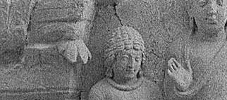 Hadda, Tepe Shotur : Buddha zwischen Begleitpersonen und korinthisierenden Pilastern