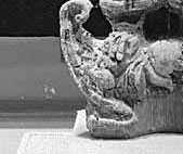 Photo : Thewalt 1969 (p2_69_01) [Vgl. Francine Tissot, Catalogue of the National Museum of Afghanistan 1931-1985, Paris 2006 (UNESCO Publishing), pp. 135, 136: K.p.Beg. 263.3.; Exc. no. 174b; K.M. inv. no. 59-1-303. H 0.45. Yakshi standing on a makara. Ivory, high relief. Begram (Kapisa province) Begram was a large city, probably a royal town, situated some 80 km north of Kabul, in the province of Kapisa. When the ivory and bone pieces were first dicovered in the Begram treasury in 1937, they were thought to be elements from luxury furniture belonging to a king, or more particularly his queen. However, neither the architectural elements nor the situation of the site seem to indicate that the building could be identified as a royal residence. The pieces of the treasury may therefore be identified as precious goods belonging to an important merchant to be sold or presented to wealthy people or perhaps to some petty sovereign or the king. This problem has to be studied anew. The ivory and bone furniture was made of carved, incised or engraved pieces, possibly painted (red and black), fixed to wooden frames with copper nails. Most of these elements have been found, although they are in very poor condition. Since the wooden settings had practically disappeared, the ivory pieces were often reduced to tiny fragments. I Have listed the pieces in the order adopted by the excavators when publishing them in 1939-54, in other words, reconstituting (as far as possible) each fragment belonging to a chair, a chaise longue, a stool or a little coffer. These ivory pieces show marked similarities with the luxury furniture depicted in the carvings from Mathura and Amaravati of the same period (second half of the first century and the second century AD or perhaps a little later). The Original photographs, in situ, together with the reconstruction of some pieces by pierre Hamelin (see MDAFA, XI), allow us to gain an understanding of these magnificent masterpieces of ancient furniture. One of them, chair 161 (M.K. inv. no. 58-1-101; see K.p.Beg.264.4), beautifully reconstructed, was on display in the Kabul Museum before the last war.