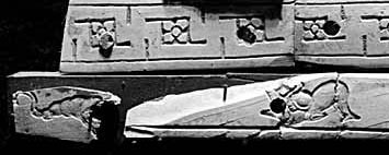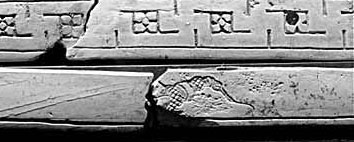 Photo : Thewalt 1969 (p2_69_04) [Vgl. Francine Tissot 2006, Catalogue of the National Museum of Afghanistan 1931-1985, UNESCO publishing 2006, Paris, pp. 158, 159, 162: K.p. Beg. 331.71 Exc. no. 183; K.M. inv. no. 58-1-43; incised ivory, low relief. ROW, 66, fig. 6, p.64. General view of coffer or stool IX. Siehe auch: K.p. Beg. 327.67a&b, Drawings by Pierre Hamelin of coffer or stool IX, MDAFA, XI, figs. 649 & 650; sowie: K.p. Beg. 339.79; Exc. no. 183w; K.M. inv. no. 58-1-52; H 0.071; Incised ivory; G. 81315/73; MDAFA, IX, fig. 173; Lion with a human head, body turned left and head facing right. Begram (Kapisa province) Begram was a large city, probably a royal town, situated some 80 km north of Kabul, in the province of Kapisa. When the ivory and bone pieces were first dicovered in the Begram treasury in 1937, they were thought to be elements from luxury furniture belonging to a king, or more particularly his queen. However, neither the architectural elements nor the situation of the site seem to indicate that the building could be identified as a royal residence. The pieces of the treasury may therefore be identified as precious goods belonging to an important merchant to be sold or presented to wealthy people or perhaps to some petty sovereign or the king. This problem has to be studied anew. The ivory and bone furniture was made of carved, incised or engraved pieces, possibly painted (red and black), fixed to wooden frames with copper nails. Most of these elements have been found, although they are in very poor condition. Since the wooden settings had practically disappeared, the ivory pieces were often reduced to tiny fragments. I Have listed the pieces in the order adopted by the excavators when publishing them in 1939-54, in other words, reconstituting (as far as possible) each fragment belonging to a chair, a chaise longue, a stool or a little coffer. These ivory pieces show marked similarities with the luxury furniture depicted in the carvings from Mathura and Amaravati of the same period (second half of the first century and the second century AD or perhaps a little later). The Original photographs, in situ, together with the reconstruction of some pieces by pierre Hamelin (see MDAFA, XI), allow us to gain an understanding of these magnificent masterpieces of ancient furniture. One of them, chair 161 (M.K. inv. no. 58-1-101; see K.p.Beg.264.4), beautifully reconstructed, was on display in the Kabul Museum before the last war.