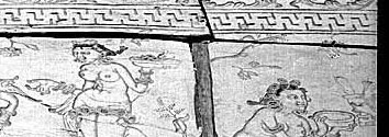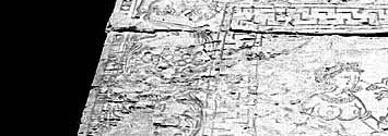 Photo : Thewalt 1969 (p4_69_08) [Vgl. Francine Tissot 2006, Catalogue of the National Museum of Afghanistan 1931-1985, UNESCO publishing 2006, Paris, p. 159: K.p. Beg. 330.70. Exc. nos. 183a&b, H 0.29; Incised ivory, low relief. G. 81315/207; MDAFA, IX, figs. 175-76, 181 & 182; D.D.B. 103.39&40 (complete view of upper part). Large plaque: upper part of coffer or stool IX. Full description in MDAFA, IX, pp. 87-90. Begram (Kapisa province) Begram was a large city, probably a royal town, situated some 80 km north of Kabul, in the province of Kapisa. When the ivory and bone pieces were first dicovered in the Begram treasury in 1937, they were thought to be elements from luxury furniture belonging to a king, or more particularly his queen. However, neither the architectural elements nor the situation of the site seem to indicate that the building could be identified as a royal residence. The pieces of the treasury may therefore be identified as precious goods belonging to an important merchant to be sold or presented to wealthy people or perhaps to some petty sovereign or the king. This problem has to be studied anew. The ivory and bone furniture was made of carved, incised or engraved pieces, possibly painted (red and black), fixed to wooden frames with copper nails. Most of these elements have been found, although they are in very poor condition. Since the wooden settings had practically disappeared, the ivory pieces were often reduced to tiny fragments. I Have listed the pieces in the order adopted by the excavators when publishing them in 1939-54, in other words, reconstituting (as far as possible) each fragment belonging to a chair, a chaise longue, a stool or a little coffer. These ivory pieces show marked similarities with the luxury furniture depicted in the carvings from Mathura and Amaravati of the same period (second half of the first century and the second century AD or perhaps a little later). The Original photographs, in situ, together with the reconstruction of some pieces by pierre Hamelin (see MDAFA, XI), allow us to gain an understanding of these magnificent masterpieces of ancient furniture. One of them, chair 161 (M.K. inv. no. 58-1-101; see K.p.Beg.264.4), beautifully reconstructed, was on display in the Kabul Museum before the last war.