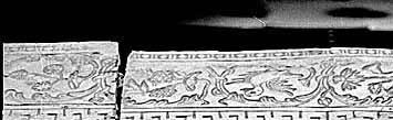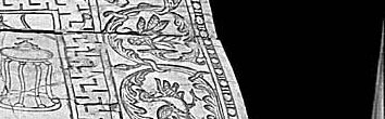 Photo : Thewalt 1969 (p4_69_09) [Vgl. Francine Tissot 2006, Catalogue of the National Museum of Afghanistan 1931-1985, UNESCO publishing 2006, Paris, p. 159: K.p. Beg. 330.70. Exc. nos. 183a&b, H 0.29; Incised ivory, low relief. G. 81315/207; MDAFA, IX, figs. 175-76, 181 & 182; D.D.B. 103.39&40 (complete view of upper part). Large plaque: upper part of coffer or stool IX. Full description in MDAFA, IX, pp. 87-90. Begram (Kapisa province) Begram was a large city, probably a royal town, situated some 80 km north of Kabul, in the province of Kapisa. When the ivory and bone pieces were first dicovered in the Begram treasury in 1937, they were thought to be elements from luxury furniture belonging to a king, or more particularly his queen. However, neither the architectural elements nor the situation of the site seem to indicate that the building could be identified as a royal residence. The pieces of the treasury may therefore be identified as precious goods belonging to an important merchant to be sold or presented to wealthy people or perhaps to some petty sovereign or the king. This problem has to be studied anew. The ivory and bone furniture was made of carved, incised or engraved pieces, possibly painted (red and black), fixed to wooden frames with copper nails. Most of these elements have been found, although they are in very poor condition. Since the wooden settings had practically disappeared, the ivory pieces were often reduced to tiny fragments. I Have listed the pieces in the order adopted by the excavators when publishing them in 1939-54, in other words, reconstituting (as far as possible) each fragment belonging to a chair, a chaise longue, a stool or a little coffer. These ivory pieces show marked similarities with the luxury furniture depicted in the carvings from Mathura and Amaravati of the same period (second half of the first century and the second century AD or perhaps a little later). The Original photographs, in situ, together with the reconstruction of some pieces by pierre Hamelin (see MDAFA, XI), allow us to gain an understanding of these magnificent masterpieces of ancient furniture. One of them, chair 161 (M.K. inv. no. 58-1-101; see K.p.Beg.264.4), beautifully reconstructed, was on display in the Kabul Museum before the last war.