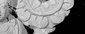 Photo : Thewalt 1969 (p5_69_10) [ Vgl. Francine Tissot 2006, Catalogue of the National Museum of Afghanistan 1931-1985, UNESCO publishing 2006, Paris, p. 380: K.p. Ha. 1007.74. K.M. inv. no. 62-3-32. H 0.26. Stucco. MIZ, 106; ROW 66, fig. 59; MIY, fig. 221; D.D.B. 103.140; V.T., P5.6910; J.P., 396; L.N. Young girl holding the triratna. Hadda (Ningrahar province) The long and famous road from Kabul to the Khyber Pass follows the River Kabul through a rich and fertile valley with Jalalabad as its centre, and there, for centuries around the beginning of the first millennium, lived large communities of Buddhist monks. The countryside may have been the base for further travels to the north, east and far away. Jules Barthoux, a member of DAFA, worked in the ruins of several monasteries, both small and large, from 1923 to 1928. He brought the finds, including many beautiful pieces of carving and modelling, to the Kabul Museum. Some pieces later came to the Musee Guimet in Paris. It is worth recording here the names of the monasteries: Bagh Gai, Chakhil-i Ghundi, Deh Ghundi, Gar Nau, Prates, Tepe Kafariha and Tepe Kalan. In the 1970s, during the interlude of peace before the wars, two Afghan scholars, Sabbai Mustamandi and subsequently Zemarialai Tarzi, worked hard to excavate the Tepe Shotur monastery in the vicinity of Jalalabad. Whereas the French experts were interested in the wealth and beauty of their finds, the Afghan experts were more concerned about the architecture of the buildings. Their contributions led to a better understanding of the daily life of the inhabitants. However, beautiful pieces of modelling were also found in their excavations and they were stored and exhibited in situ. This splendid effort came to a tragic end because of human folly.