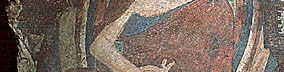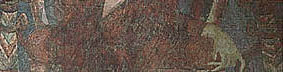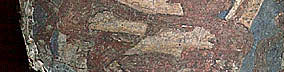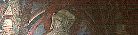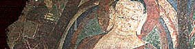 T.Sh.p.Ka. 229.3. Exc. no. K.16, H 0.77; Painted clay. MDAFA, III, Pl. LXXIII, fig. 87; Tarzi, B 158; L.N. Two Buddhas seated to the right of the king. A second Buddhist monastic site was excavated in the Kakrak valley south-east of Bamiyan. Along with a smaller Buddha statue than those of Bamiyan, some dwellings of Buddhist monks were found in the main precinct. The paintings in the grottoes were removed and taken to the Kabul Museum by Joseph Hackin. The best known is a figure of the 'hunter-king' and his dog. The site is thought to date a little later than the main site in Bamiyan. |
