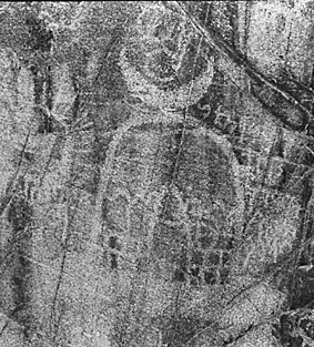 Zeichnung ist dies, wie bei fast allen Felszeichnungen üblich, nicht sicher zu entnehmen: es könnte sowohl ein