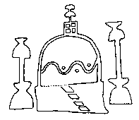 Girlandenschmuck (Vgl. Einleitung unter Girlande) in Form einer Wellenlinie Danis Beschreibung als "wavy line" ist zwar zutreffend, aber völlig unzureichend auch hier zeigt sich wieder, mit welch unziemlicher Hast er sein Buch zusammengestrickt hat, nur um rechtzeitig zur 1983'er Konferenz damit fertig zu sein. Es reicht eben nicht aus, lediglich eine einigermaßen zutreffende Beschreibung abzuliefern auch die Interpretation und Einordnung der betreffenden Objekte müssen in sich stimmig sein. So hat Dani hier nicht gesehen, daß der Dreiecksgiebel in den Felszeichnungen Nordpakistans eine Seltenheit ist, die besonders hervorzuheben wichtig ist, noch daß die "wavy line" auch inhaltlich eine Bedeutung hat und nicht einfach nur eine wellenförmige Linie rein dekorativer Art ohne Sinn und Zweck darstellt. Das